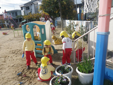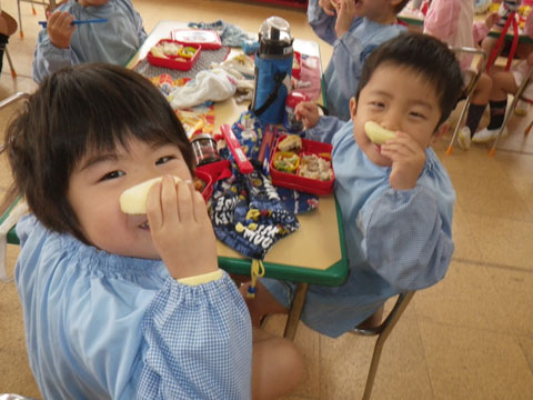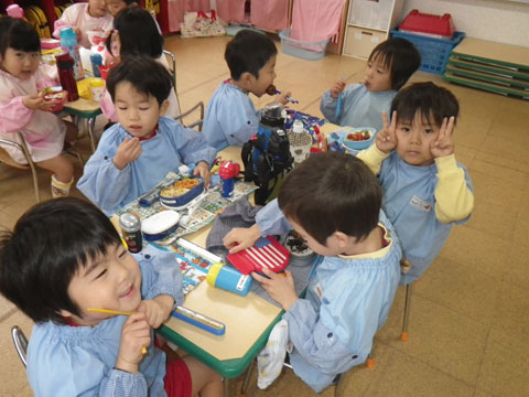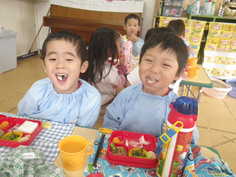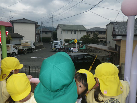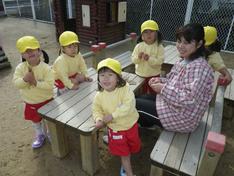 年長組さんに便乗したお散歩から帰園したみんなも、