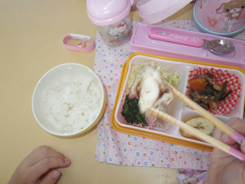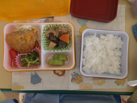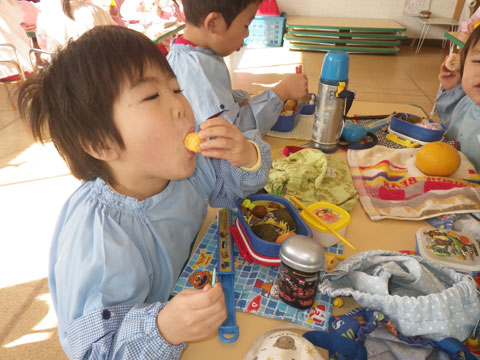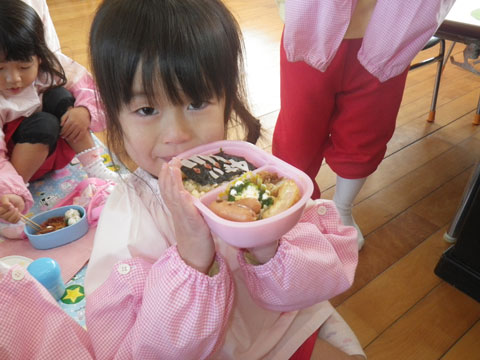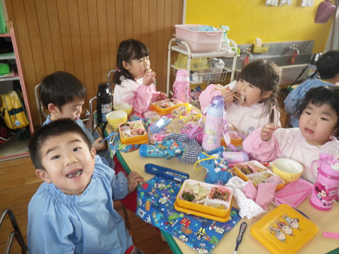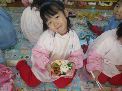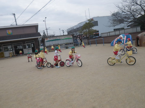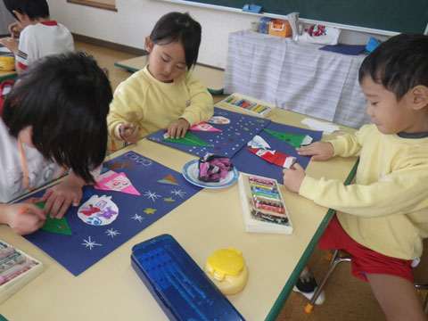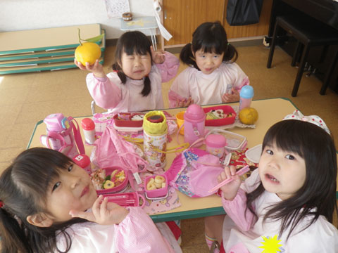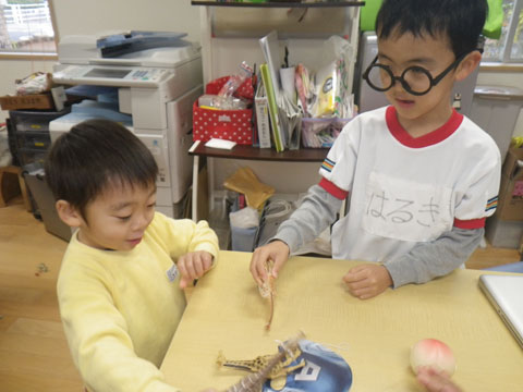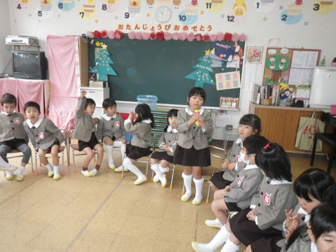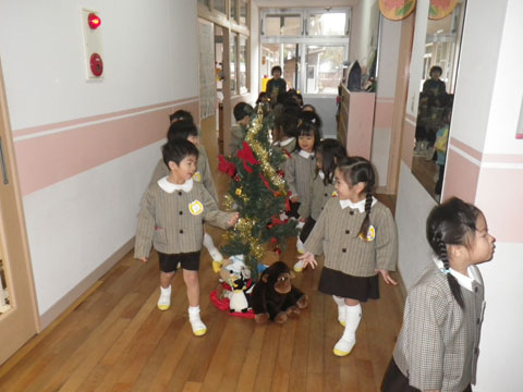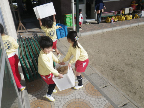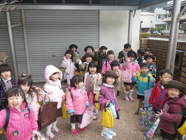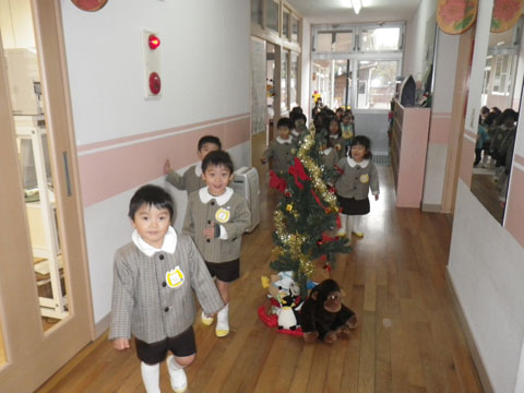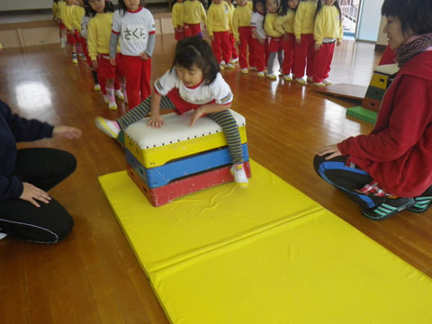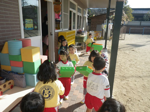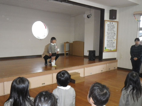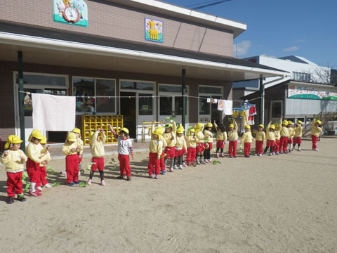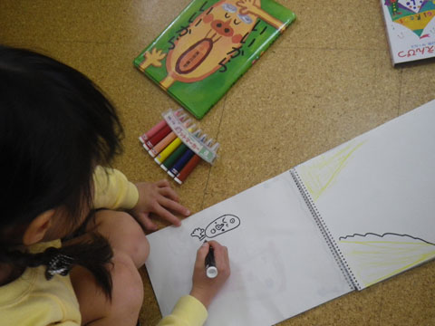 あいにくの小雨で園庭に出られなかったので、室内にて