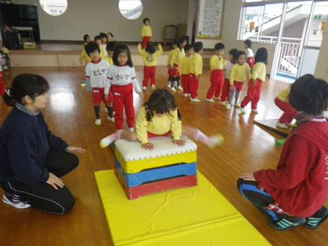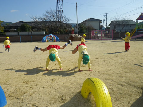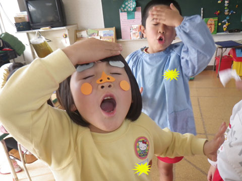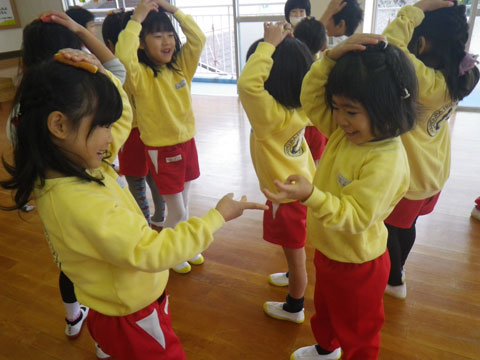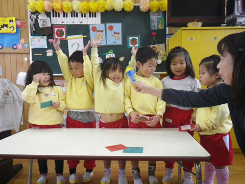 じゃんけんで頭の上にお手玉を乗せてみたり、