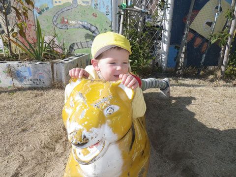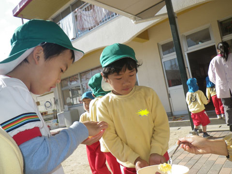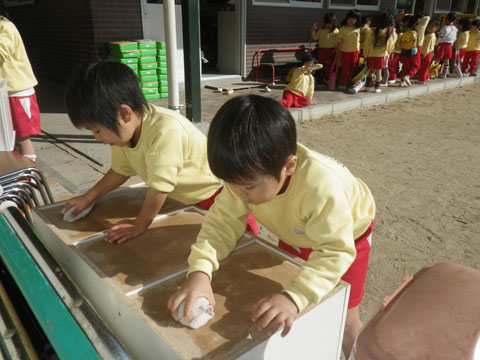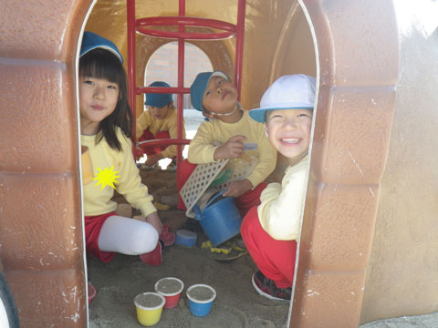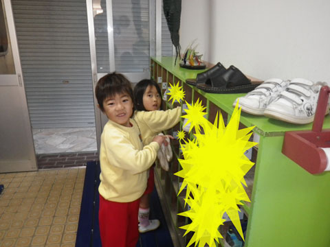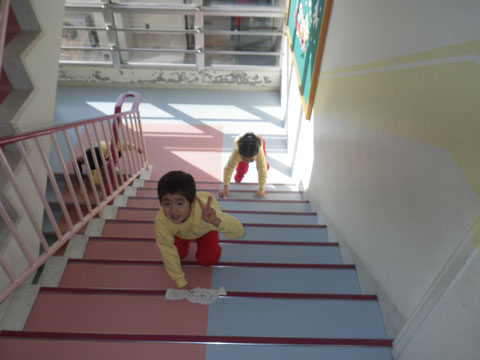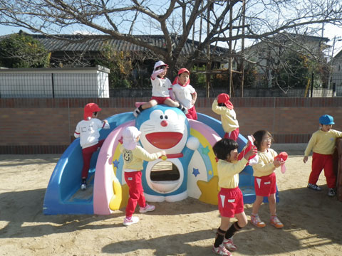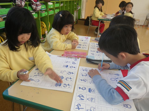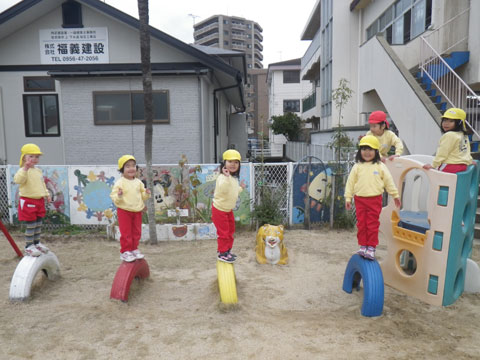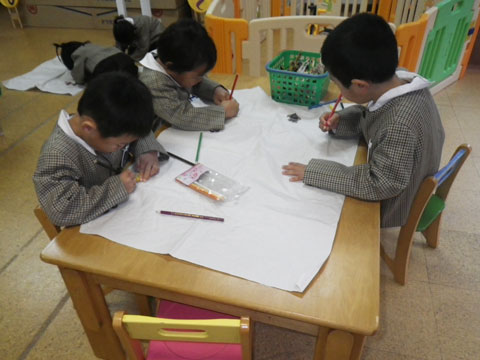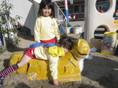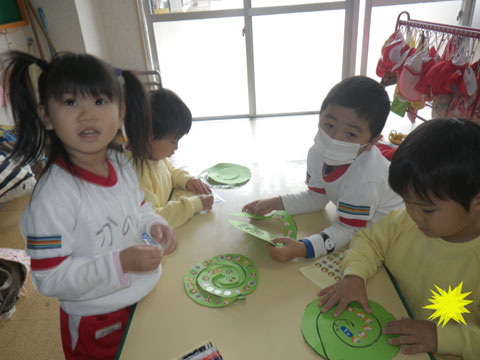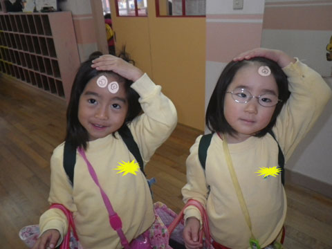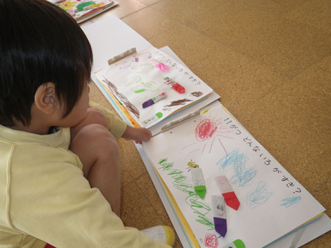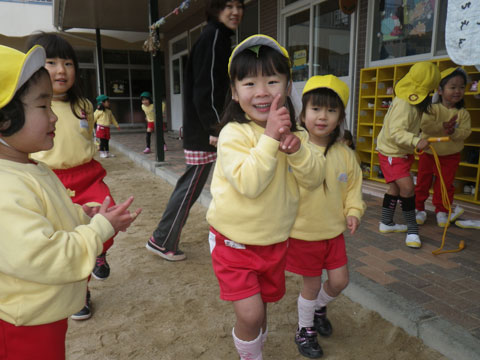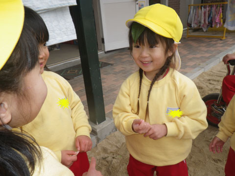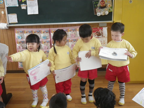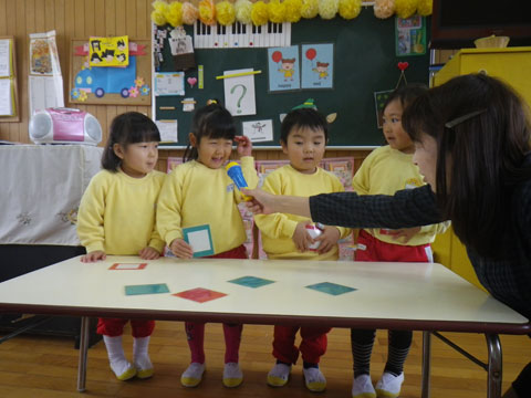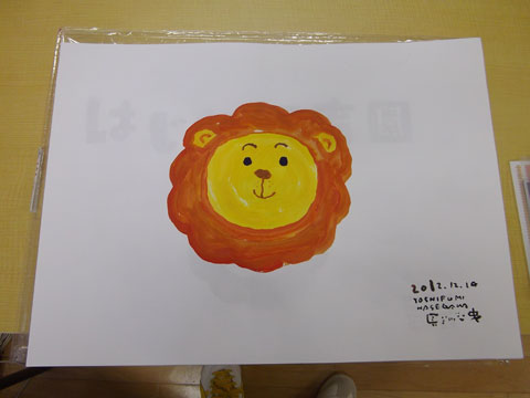 幼稚園のライオンロゴを見せ、もっと小さな園児がくるので、