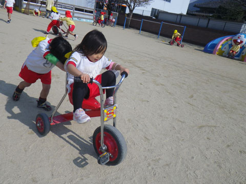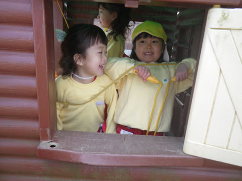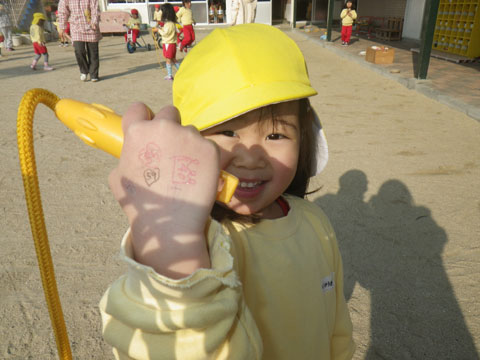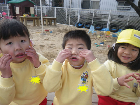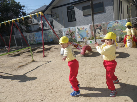 朝から元気に園庭を走り回っていると暑いくらい!↑この通り