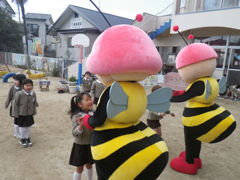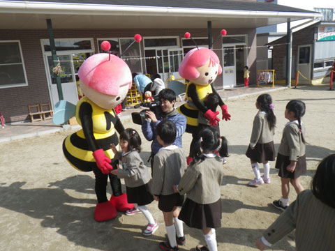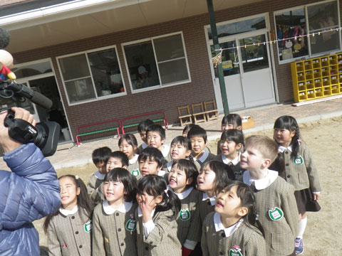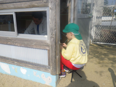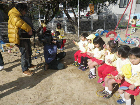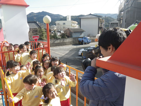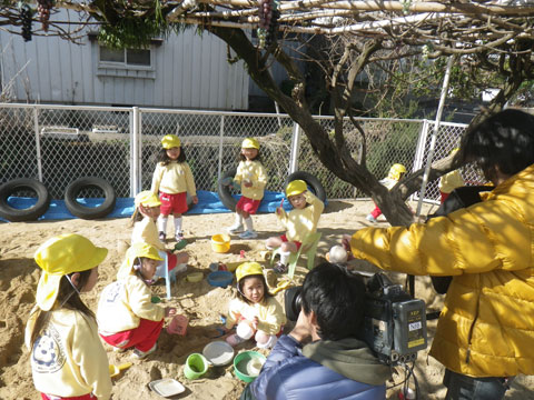 名人の仕事にもこうやって園児が代りばんこに横にいます。