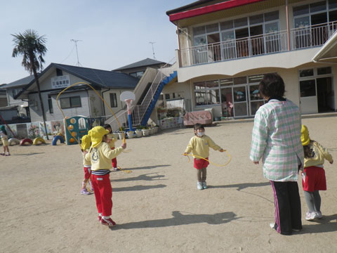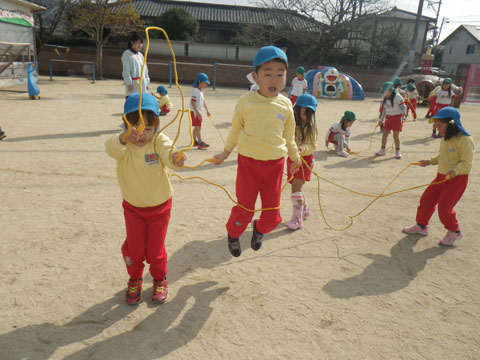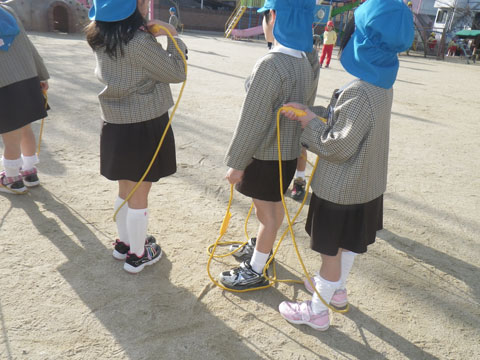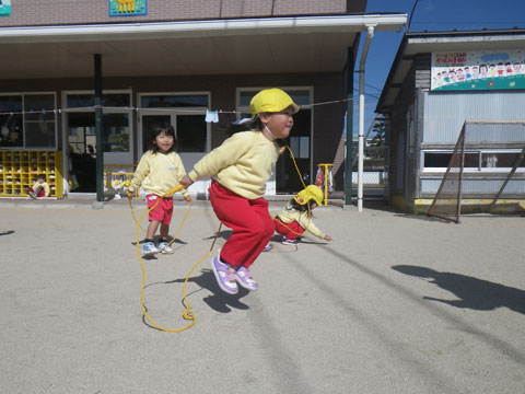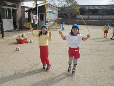 このなわとび、よ〜く見ると縄の片方は相手のを持っています!