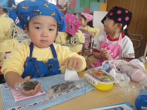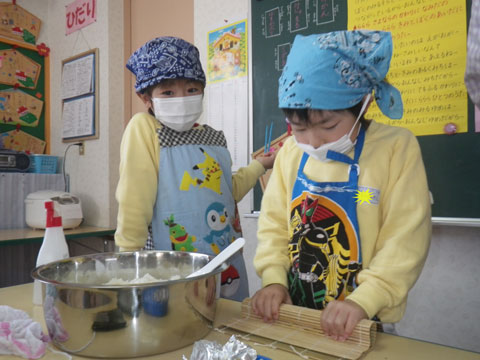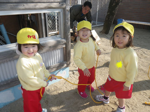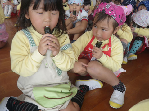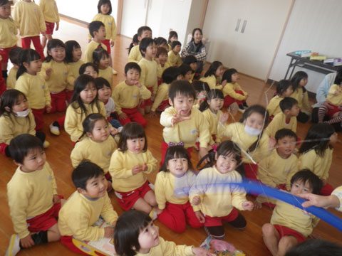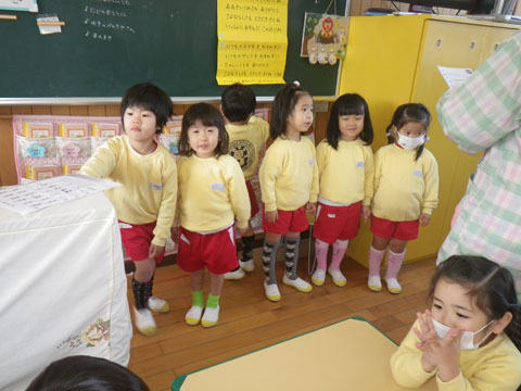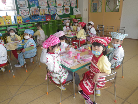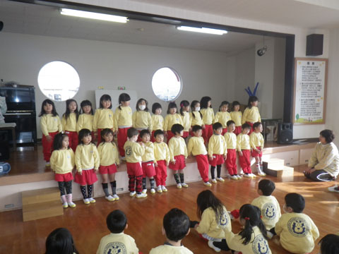 来週は誕生会に豆まき、新入園児のみんなは制服採寸となっています。