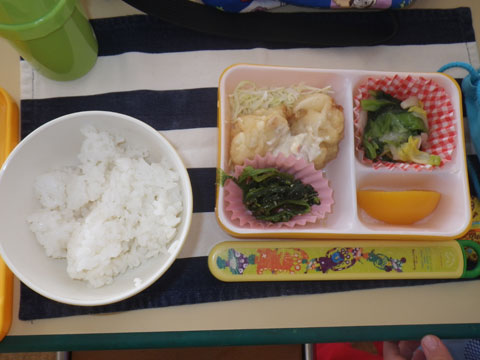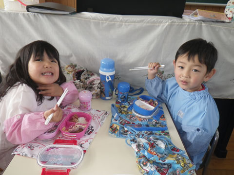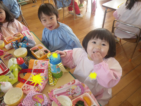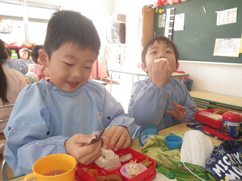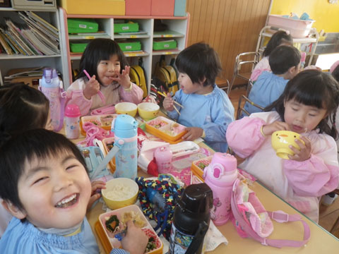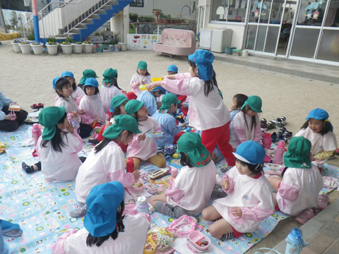 ポカポカ気持ちいいので久しぶりに年長組さんが外ランチ