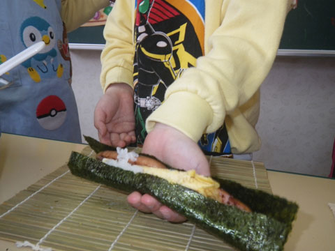 巻いて、(福を巻き込むように巻き寿司らしいです。)