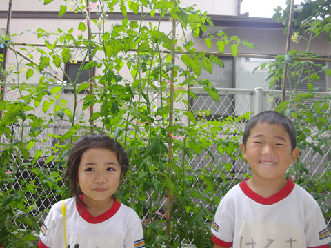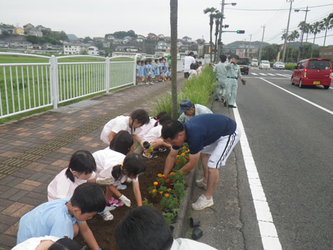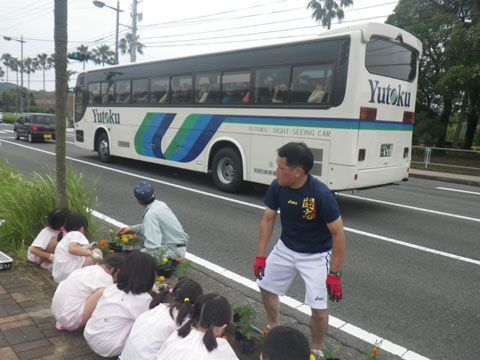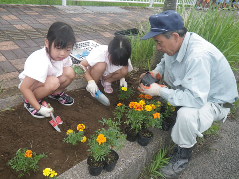 佐世保市役所からの苗植え名人と幼稚園からの何でも名人の最強タッグから