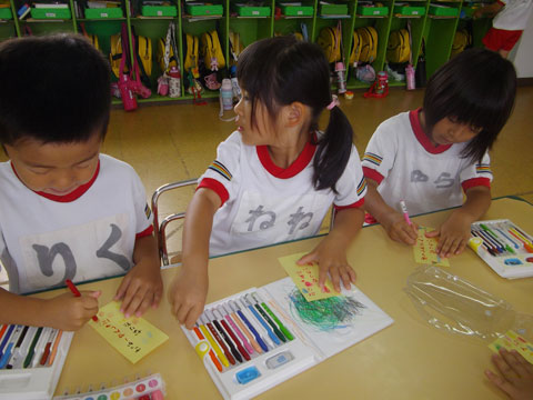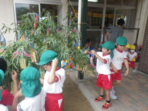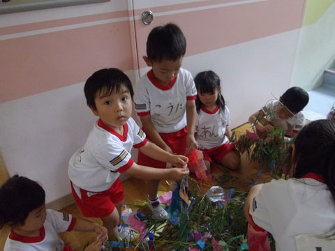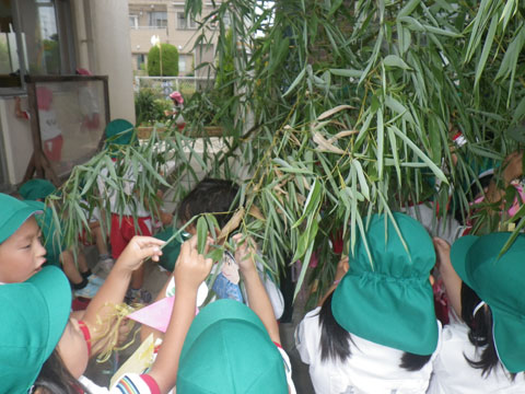 幼稚園では、年中少児も短冊に願いを込めて、