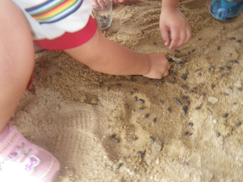 砂場には大量のだんごむし、ローラーすべり台には大量の園児が、