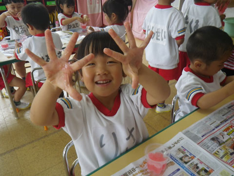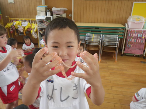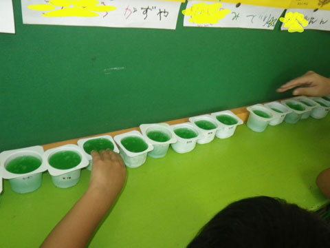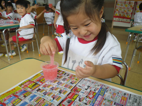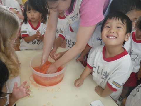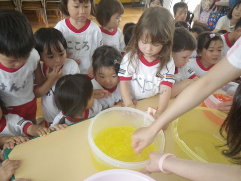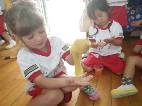 今日の『雨の日あそび』は『スライム作り』