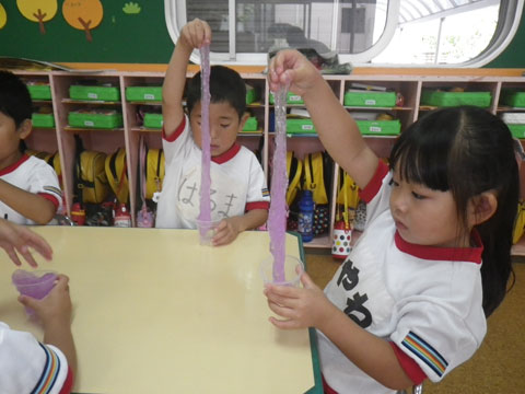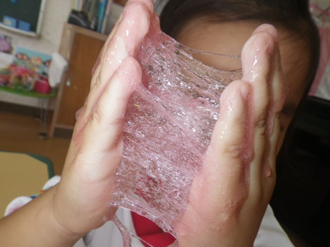 昨日作ったスライム、今日もブームは続いております!