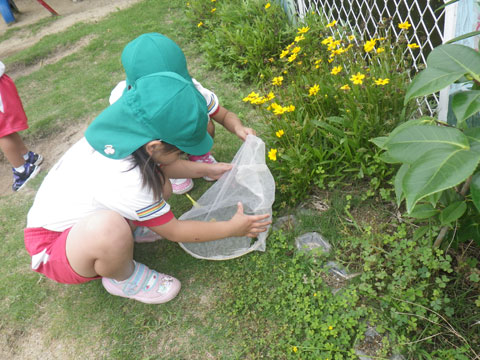 自由あそび、虫探し、園庭ではやることがいっぱい