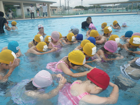 年長児は水着・水泳帽・タオルの準備をお願いします