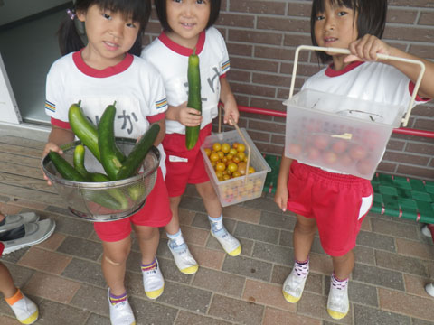 そこで、お昼ご飯に彩りを加える野菜を朝から収穫!