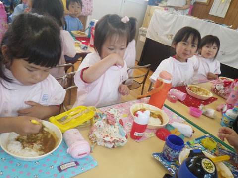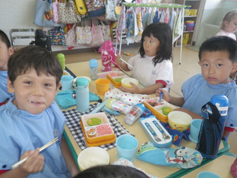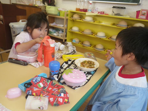 こうして年長児が率先して手伝ってくれます