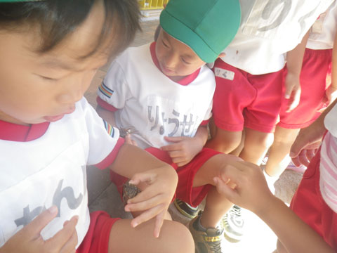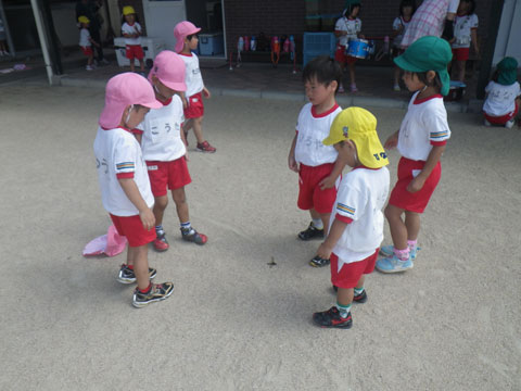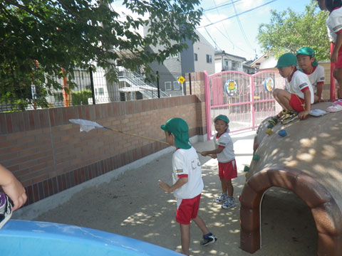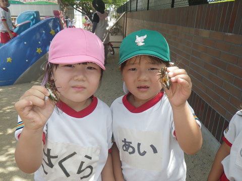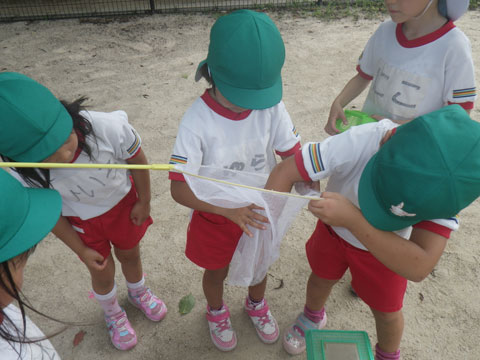 朝の外あそびでは、なんと、セミの収穫は2匹のみ・・・