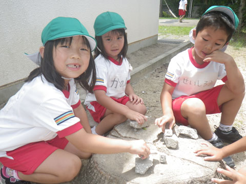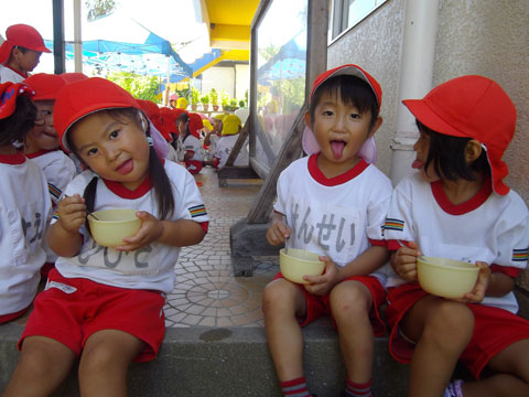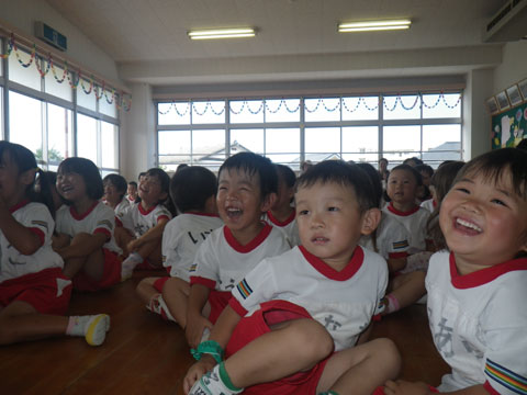 たくさんの園児が真っ黒に日焼けしております