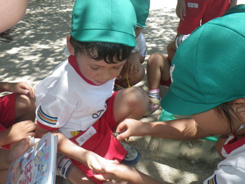 図鑑を片手に熱心