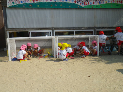 大人からすると、サッカーゴールの使い道は1つしか思いつきませんが、