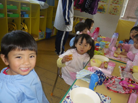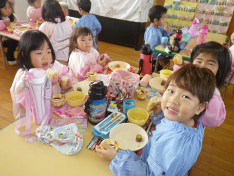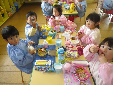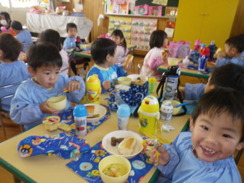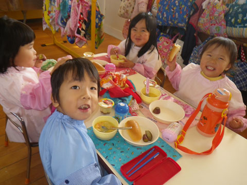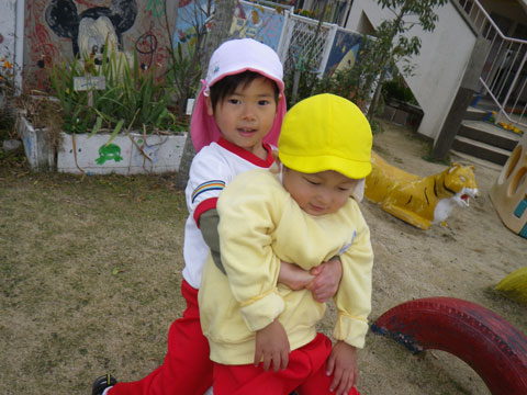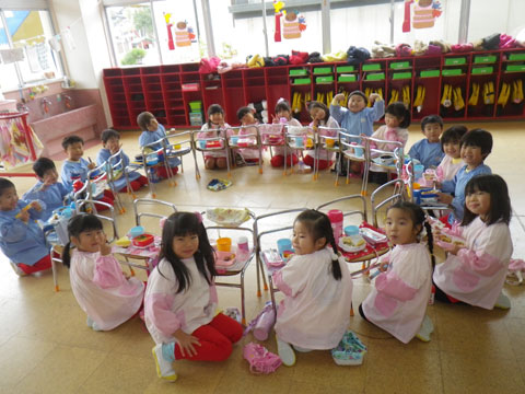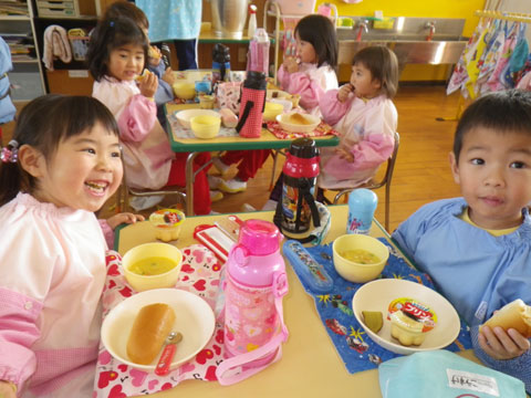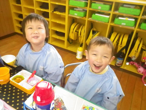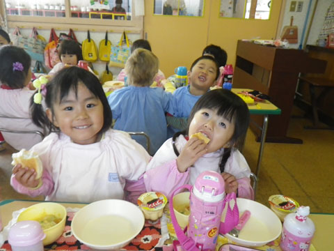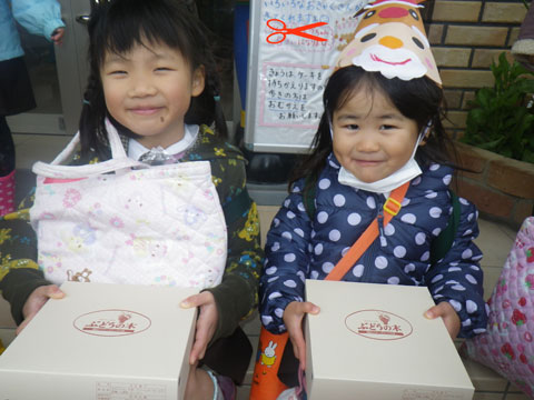 2個持ち帰った兄妹で通園している園児の皆さん、