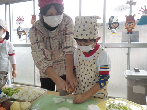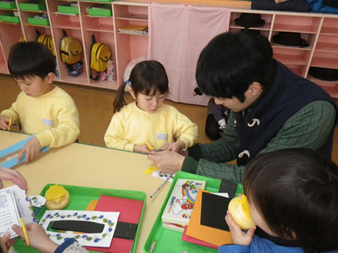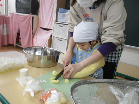 年長児ともなると、一緒に切らなくても自分で慎重に・・