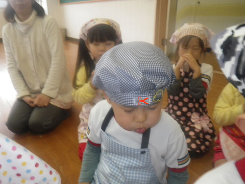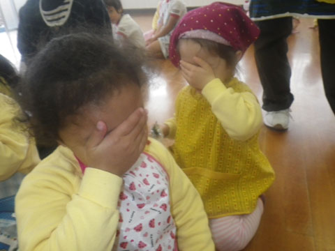 つい目を開けてしまいそうな園児は自分で工夫して手で目隠し!