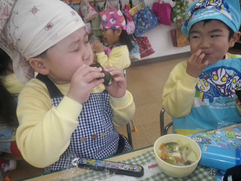 しかもそれが、季節の行事+給食も兼ねるなんて・・。良いイベントです。