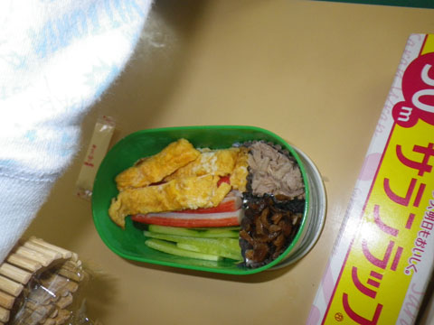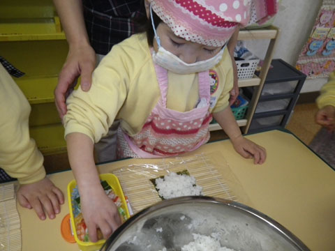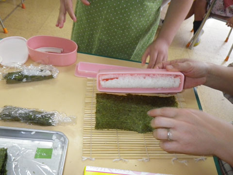 のりの上にご飯を敷いて、好きな具を乗せて『巻きす』で