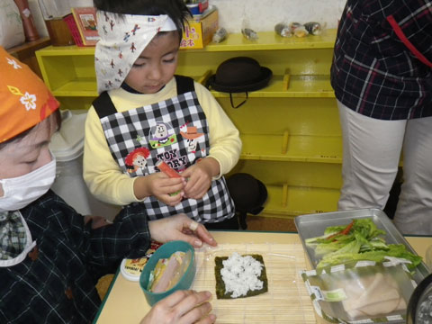 味にお腹もいっぱい!だけでなく、自分たちで切って、巻いてという作業が加わり
