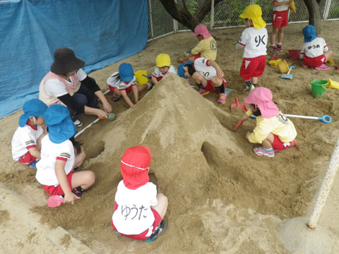 朝からでっかい山を作ったり、
