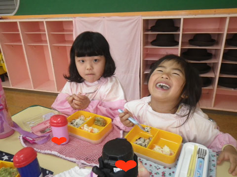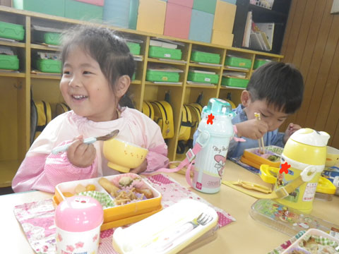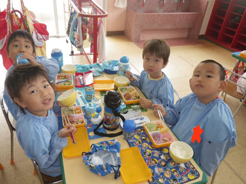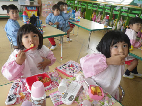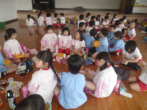 年長児は2クラス一緒に食べました