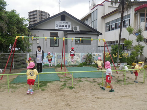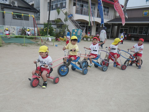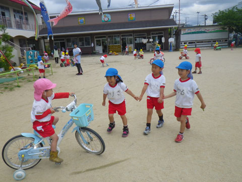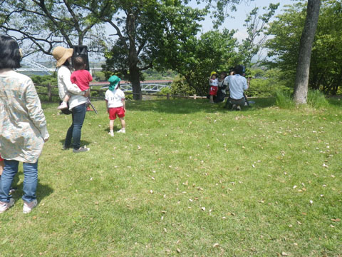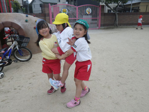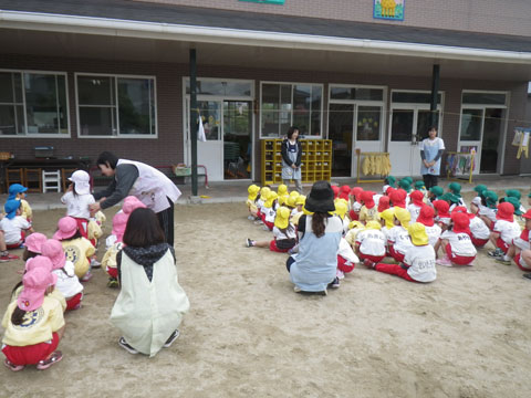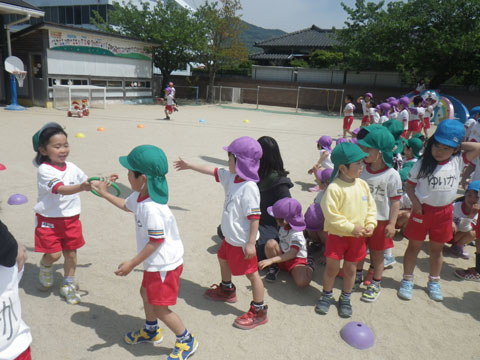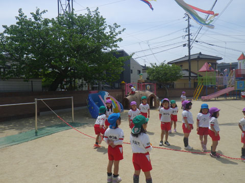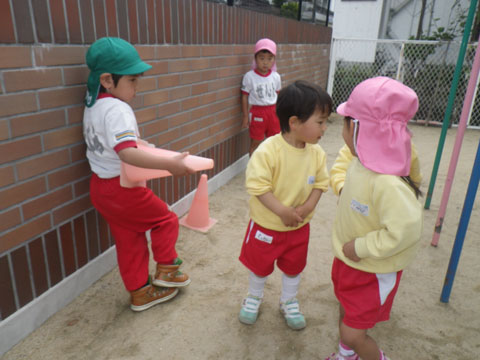年少児は『おはじまり』後も引き続き園庭であそんで、