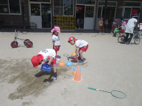 年中児のあそび道具になっていて、間違ってそっちに走ってみたり・・