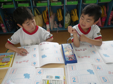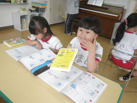 年長児はついに、文字と数の学習がはじまりました