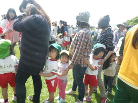 次第に長くなる列も、3園が入り混じっての列車です
