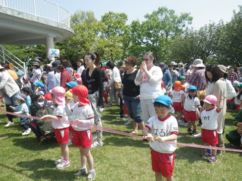 9月末のうんどうかいが本番、恒例の年長児の全員リレー