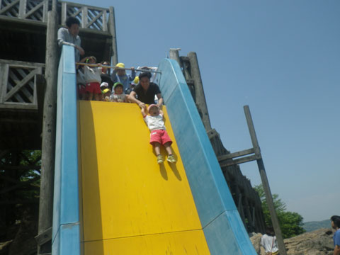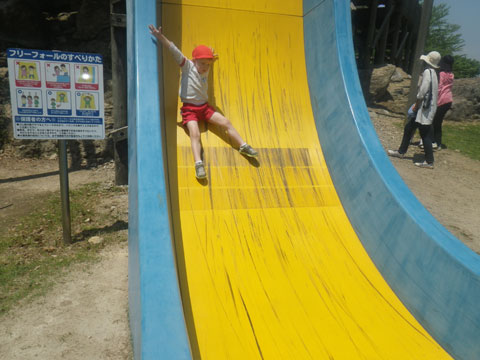 あっという間に滑り降りる子も、顔をこわばらせながら
