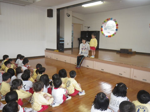 今朝の『おはじまり』は全員おゆうぎ室へ集合して