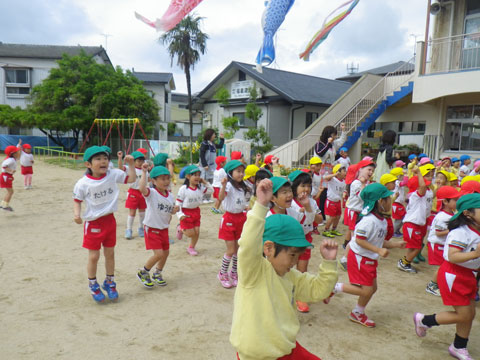 体操服・カラー帽子登園、8:50までに園集合ですので