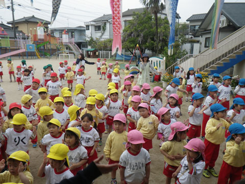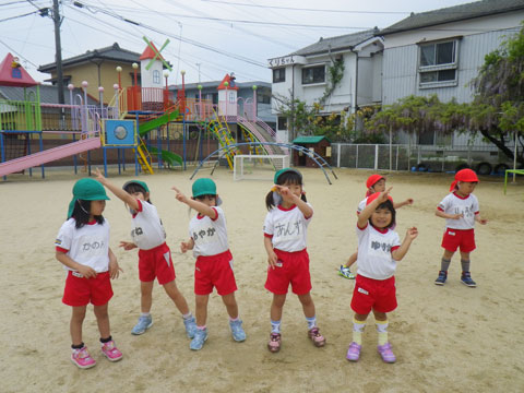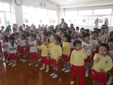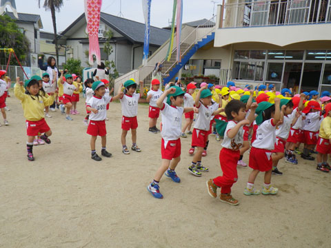 来週の歓迎遠足で踊る体操の練習も