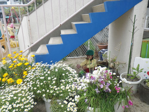 今、幼稚園にもたくさんのきれいな花が咲いていますが、