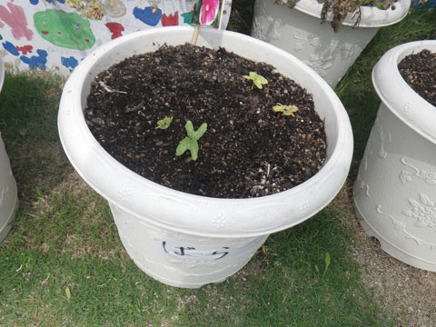 先日蒔いたアサガオから芽が出てきています