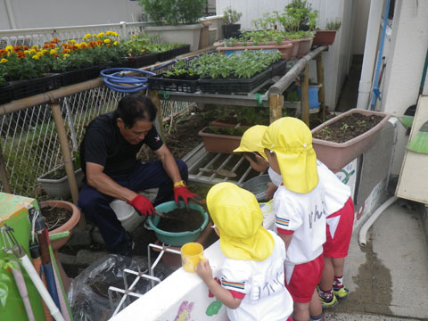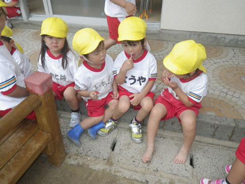 製作を一緒に行ったり、年少児は活動後 再び園庭へ出て一緒にあそびました!