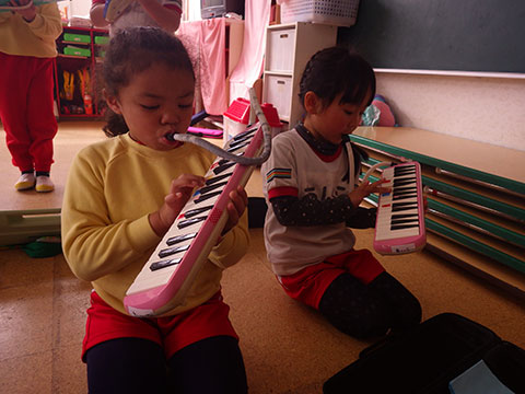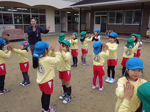 年中少児の「♪世界中のこどもたちが」に、