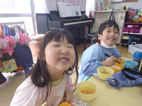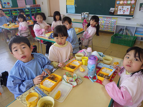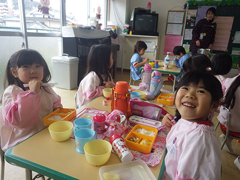 先に食べ終わった園児がどんどん来るものだから・・、