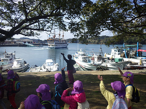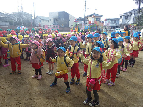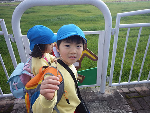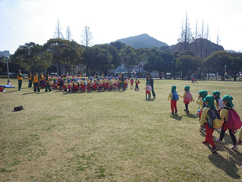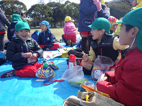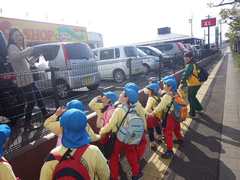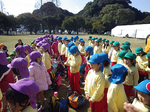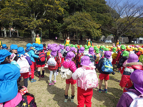 『おわかれ』遠足ですので、卒園していく年長児と一緒に