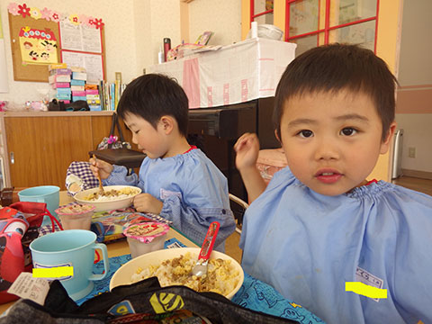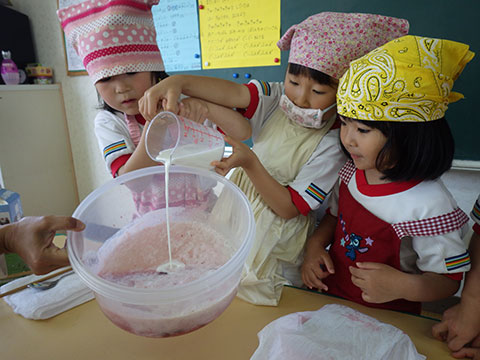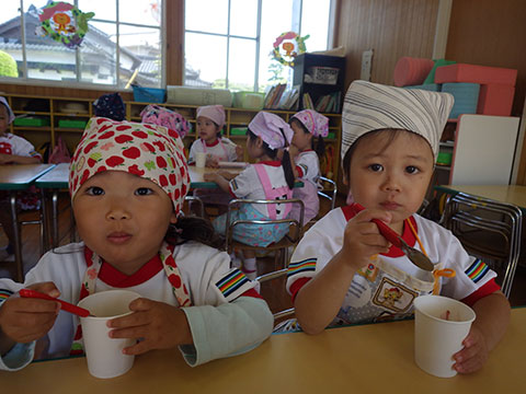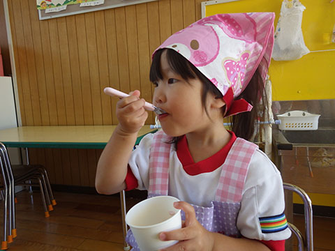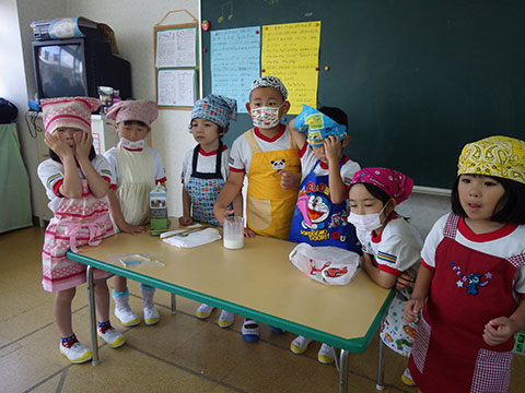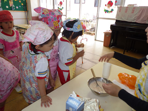 園生活のリズムもずいぶんつかんでいますので、今日は簡単なクッキング