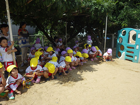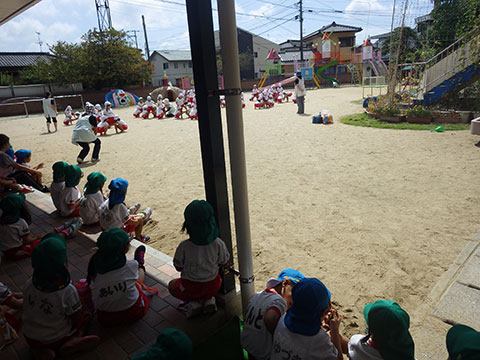 園舎側からも、砂場の方からもお客さんがいっぱい