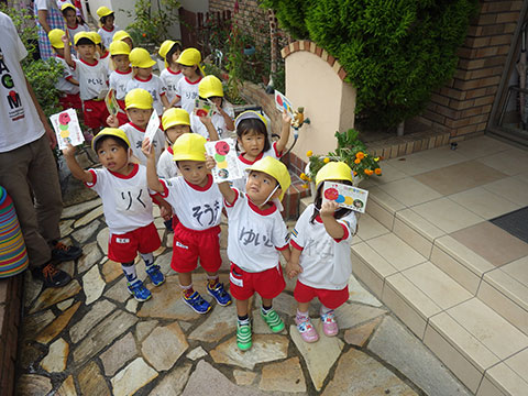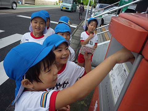 年長児・年中児は外のポストへ、年少児は局内のポストへ!