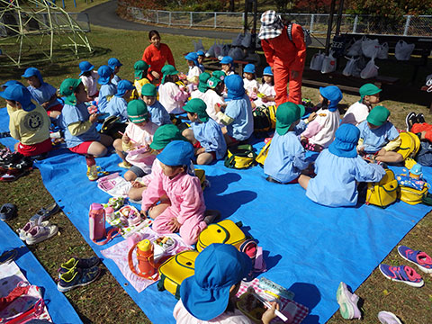 お昼はシートを敷いてみんなでお弁当